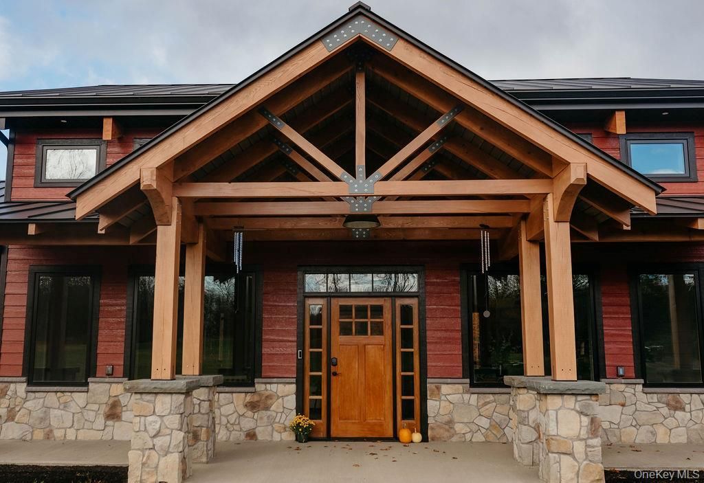 Tucked away on five serene acres in Gardiner, NY, just minutes from the Wildflower Resort, Mohonk Preserve, and the vibrant village, this net-zero energy retreat is more than a home-it's a lifestyle of intentional design, sustainability, and connection to nature. With over 3,000 square feet of artfully crafted living space, this custom-built 3-bedroom, 3.5-bath residence balances high performance and high style. Designed with ICF construction, radiant-heated polished concrete floors, solar panels, and smart-home technology, every detail was thoughtfully chosen for comfort, efficiency, and ease. Step inside to an expansive open-concept layout where warm wood-paneled ceilings, industrial-style exposed ductwork, and walls of oversized windows blur the line between indoors and out. A gourmet kitchen with bold custom cabinetry and a spacious island invites everything from slow mornings to lively gatherings. The adjacent dining and great room center around a floor-to-ceiling fireplace-designed for both everyday living and elevated entertaining. Each bedroom is a private sanctuary with its own en-suite bath, including a luxe primary suite featuring a spa-like bath with a soaking tub, walk-in closet, and sliding doors that open directly to the back patio. Whether it's a quiet cup of coffee or a deep breath under the stars, this home supports every rhythm of life. Outdoors, an insulated, heated ICF pool offers year-round enjoyment. The oversized garage-with custom tri-fold glass doors-functions as a media lounge, rec space, or studio, adapting to whatever life calls for next. Add in an EV charger, expansive lawns, and endless garden or exploration potential, and you have a future-proof home where lifestyle leads. Whether you're hosting weekend guests, working remotely with a view, or simply looking for a forever home that reflects your values, 1248 Albany Post Rd offers a rare opportunity to live with design, comfort, and consciousness in perfect harmony.