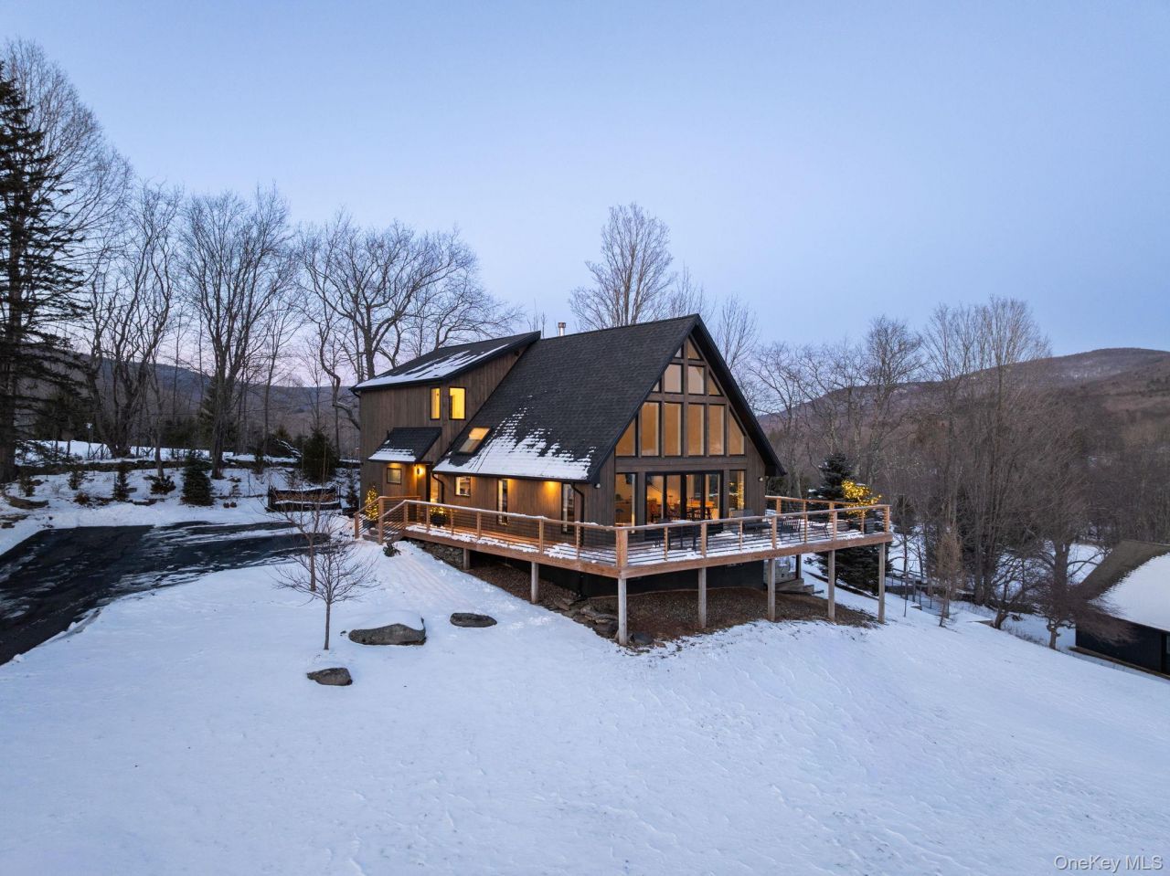 Welcome to FieldHouse 206-a stunning Catskills retreat where modern style meets serene natural beauty. This thoughtfully renovated 3-bedroom, 2-bath home spans 2,170 sq. ft. and is the perfect place to unwind, reconnect, and savor every moment.Set on 8.88 acres across three separate lots, this property offers more than just space-it offers possibility. With DEP approval for a four-bedroom septic on the vacant lot, there's room to dream big. Surrounded by 39 acres of protected NYC land, it feels like your own private sanctuary, yet you're just minutes from everything this vibrant area has to offer.Step inside and prepare to be wowed. The great room, with its soaring 21-foot vaulted ceiling and a south-facing wall of glass, floods the space with natural light and showcases breathtaking, panoramic views. Picture yourself enjoying sunrise coffee or sunset beverage with this ever-changing masterpiece as your backdrop. The open kitchen is as stylish as it is functional, boasting leathered granite countertops, sleek black cabinetry, and modern appliances-perfect for hosting dinner parties or quiet nights in. When the chill sets in, cozy up by the wood-burning stove, and when warmer weather arrives, take the good times outside to the wraparound deck or soak under the stars in the saltwater hot tub. Upstairs, the primary suite is a true retreat, complete with its own private, covered deck for peaceful mornings or quiet evenings. Downstairs, two additional bedrooms offer space for others. The magic continues outdoors. Wander the grounds to discover a tranquil pond, a bluestone patio with a fire pit for late-night conversations, and a detached two-car garage with heat and electricity. A paved asphalt driveway adds a touch of convenience to this inviting property.And the location? It simply can't be beat. Just minutes from Windham's charming town center, you'll find skiing at Windham Mountain, the scenic Windham Path, hiking trails, world-class mountain biking, and a delightful selection of restaurants and shops. Nearby Hunter, Tannersville, Catskill, and Hudson are all easy drives, offering even more to explore.Whether you're looking for a full-time residence or a weekend escape or investment property, FieldHouse 206 invites you to experience the perfect balance of tranquility and adventure. This is more than just a home-it's the Catskills lifestyle you've been dreaming of.