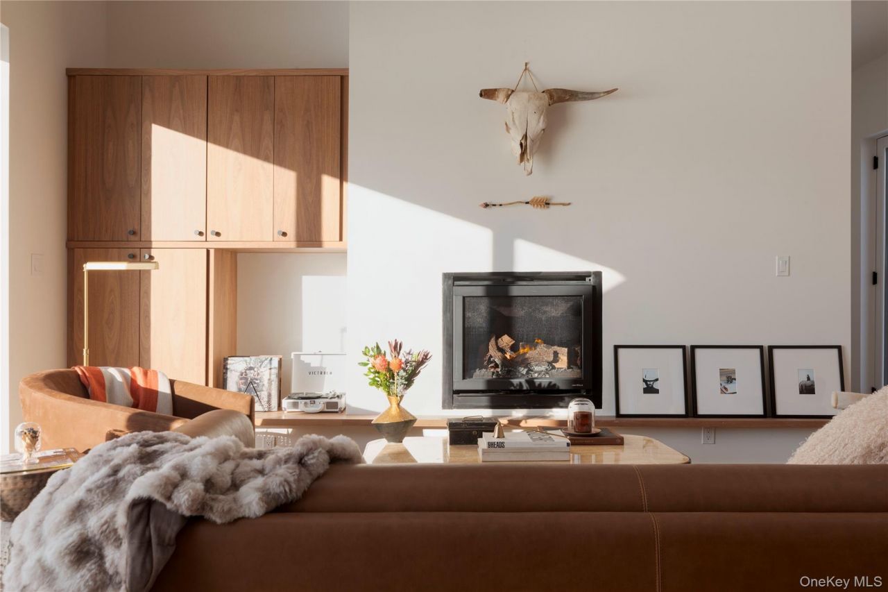 This exquisite home, masterfully designed, and flawlessly brought to life by Dynamism Built, epitomizes a refined curation of high-end finishes, premium materials, and bespoke craftsmanship. The coveted upstate black cabin set amongst the most spectacular unobstructed mountain view backdrop, is an extraordinary fusion of modern luxury and enduring elegance. With every space meticulously designed to embody both functionality and style, no detail has been overlooked in this masterpiece of quiet luxury. The home has one wing housing a large primary suite complete with an office and luxurious bathroom, and the other houses guest bedrooms and entertaining spaces, all connected by a sleek glass corridor. Radiant heated floors run throughout the entire home with Madera white oak flooring throughout. The primary wing is the ultimate sanctuary, spanning the entire east wing of the house. The office has large light filled corner windows, and could double as a nursery or extra guest room. The bathroom is a true showstopper, with the deep soaking tub set perfectly in front of a large nearly floor to ceiling window, a luxurious glass enclosed spa shower featuring exquisite Makoto tiles imported from Italy and a Kohler Digital Shower System, offering state-of-the-art luxury and spa-like experience. Kohler fixtures are featured throughout the home. As you enter the primary bedroom, you'll be delighted with how the light elegantly pours in through the corner windows. You have sliding glass doors onto your own private deck to the outside. The bedroom is a spacious king-sized room with a large closet. The field beside the lot in front of the mountain is protected land, so you can be assured that the view from your giant picture windows will be unobstructed! This wing of the house also houses storage and mechanical closets, and a neatly tucked away laundry closet. Stepping into the open concept kitchen, dining, and living room, you'll be washed in south-facing. The kitchen is a master class in great modern design, featuring dramatic Caeserstone counters paired with custom walnut cabinetry, a large island with Kohler sink, and a curated luxury appliance package. A centerpiece of relaxation, the living room features an automatic gas fireplace, and a custom built in walnut media cabinet. Large sliding glass doors leading off to the deck that faces the picture perfect vignette of your mountain view. On the west wing of the house, you'll find 2 guest bedrooms with soaring ceilings and tall windows, both with ample closets. The m