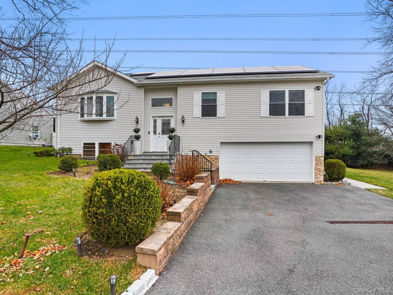 Welcome to 38 Kathwood Road! This beautifully updated raised ranch offers bright, airy living with today's most desirable finishes. A flowing open-concept layout begins in the sunlit living room, highlighted by a striking bay window and a gas fireplace. At the center of the home, the stylish, modern kitchen impresses with crisp white cabinetry, quartz countertops, stainless-steel appliances including a double wall oven, and a statement island with gas cooktop and wine refrigerator-perfect for both everyday living and entertaining. The adjoining dining area opens through sliding glass doors to an enclosed sitting room leading to the deck overlooking the spacious yard and patio, creating seamless indoor-outdoor living. The serene primary suite features a customized walk-in closet and a renovated spa-like bath, while two additional bedrooms are served by a beautifully updated hall bathroom. The finished lower level adds even more flexibility with a den, family room, kitchenette, laundry, and direct access to the two-car garage. Meticulously maintained and ideally located near the Jitney to Hartsdale Metro-North, this move-in-ready home blends modern comfort, thoughtful updates, and everyday convenience into one exceptional offering. Tesla solar panels and Tesla Power-wall included. Sprinkler system, security system and cameras included. Sunday, January 25 Open House canceled due to weather.